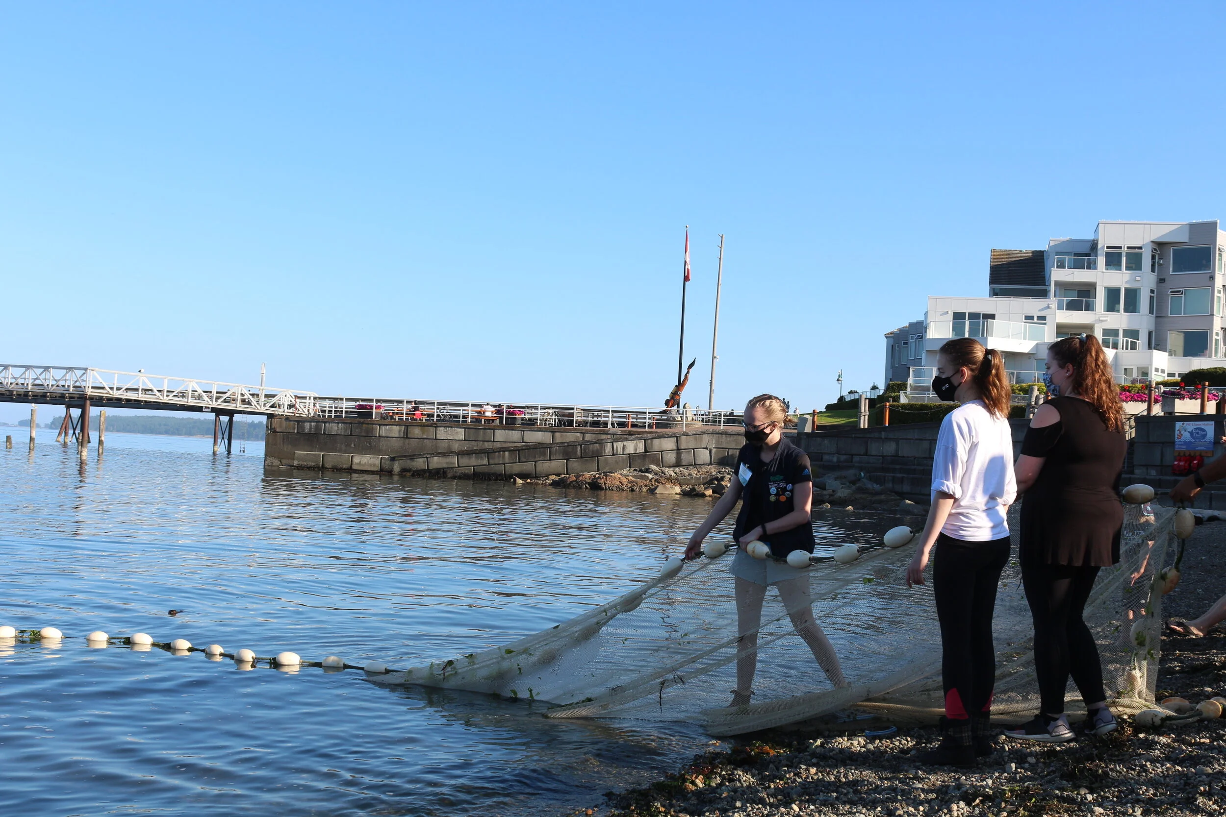 Releasing the salmon. Left to right: Liv, myself (Mary) and Lindsay